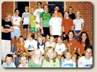 I år er det Mathilde Wiedemann og Andreas Thorsted, der står for træningen, og disse to dygtige turneringsspillere er også ansat til at træne en del af nybegynder- børnene, når sæsonen starter 1. september. Billedet her er fra uge 27, hvor der blev undervist i at holde rigtigt på en badmintonketcher, at serve og spille til hinanden, men der var også tid til en masse lege, som faldt i børnenes smag.