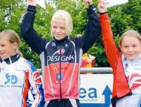 Specielt har klubbens børneryttere overrasket positivt. I gruppen mellemste piger (11-12 år) kom Anna Madsen på podiet alle dagene med tre 3. pladser. På billedet ses hun til yderst til højre i forbindelse med én af hendes tre tredjepladser den 28. maj i Hammel.