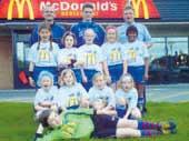 Bagerst: Assistenttræner Steen Laursen, cheftræner Tommy Jespersen og McDonalds-chef Kenneth Larsen. Midten: Klara, Signe, Mia, Katarina, Gry. Forrest: Katrine, Sarah, Rikke, Julie, og Marie.
